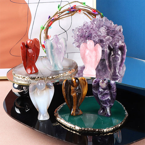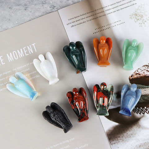 Carved Guardian Angel Natural Crystal Pocket Statues Figurines